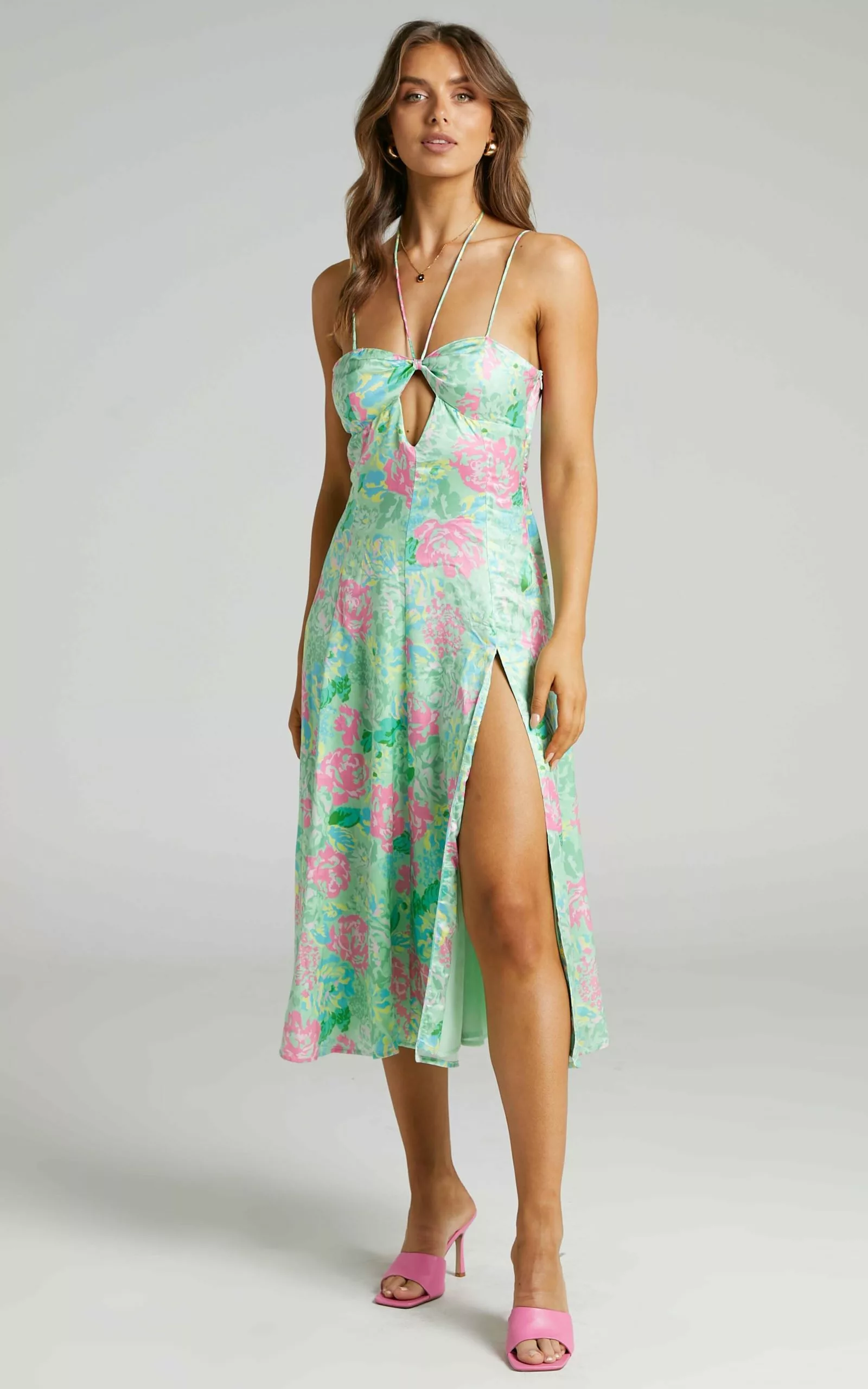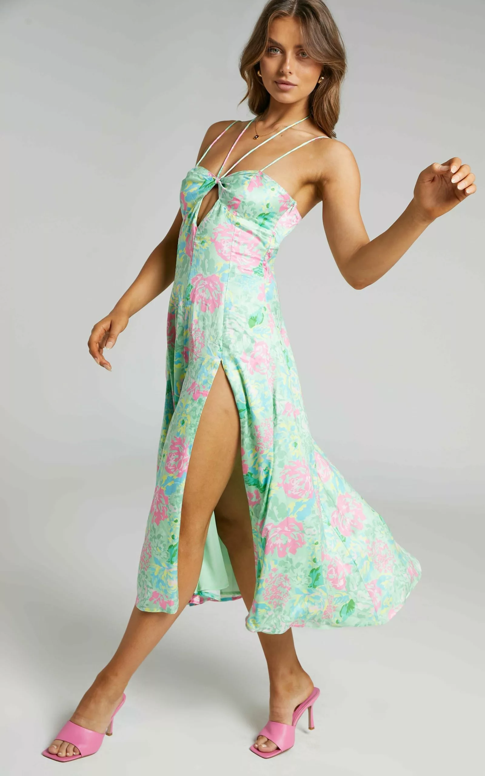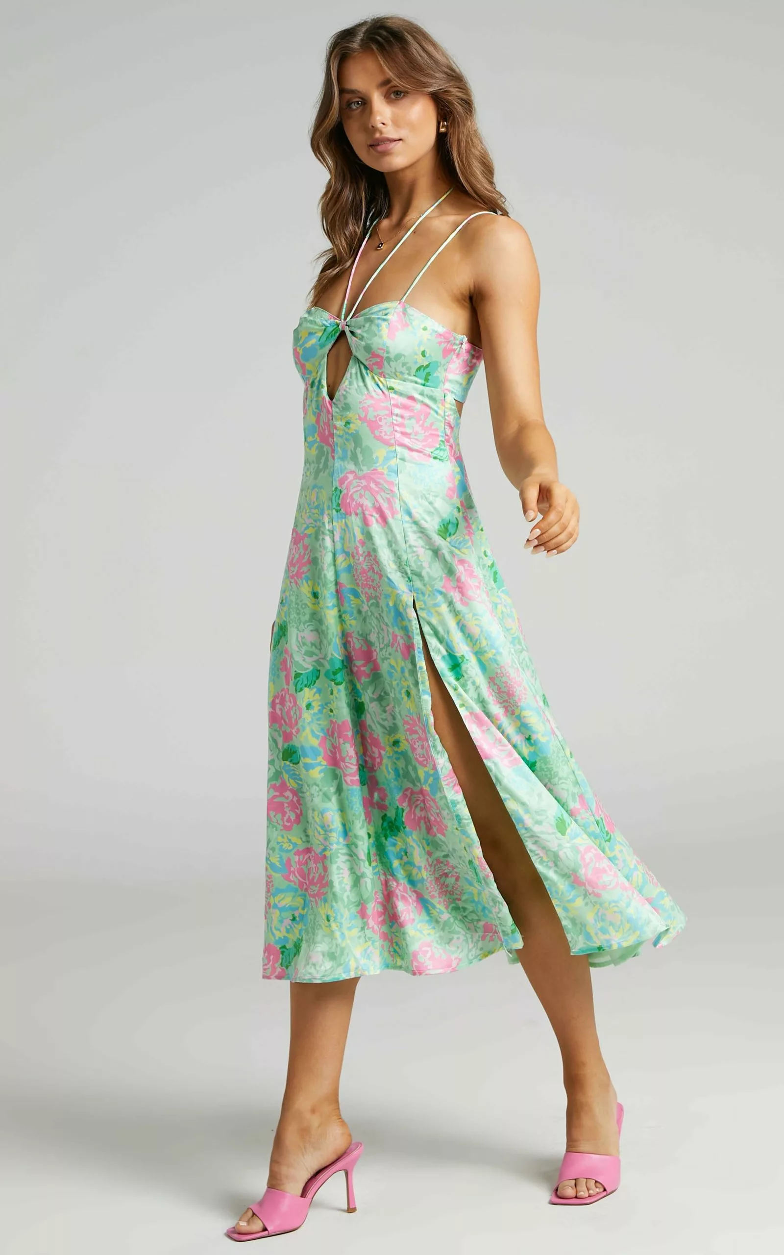 - Summer printed floral midi dress
