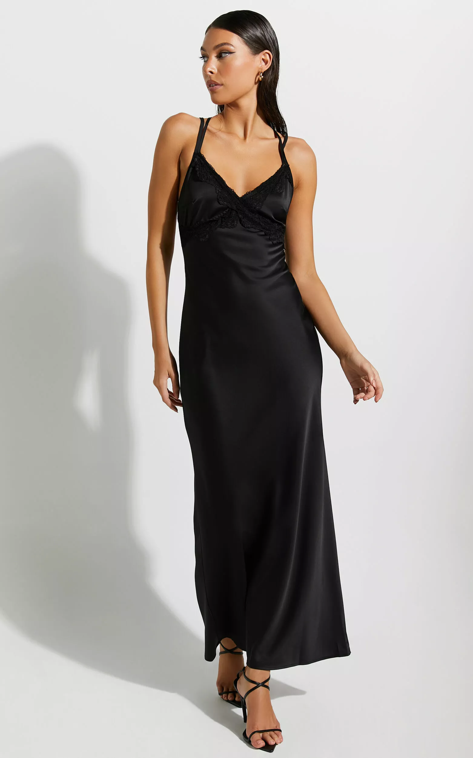 The Nievie Lace Trim Bias Cut Midi Dress in Black is the perfect addition to your autumn wardrobe. This dress features stunning lace trim detailing and a flattering v-neckline, making it suitable for any formal or cocktail occasion. The bias cut of this slip dress creates a beautiful silhouette, accentuating your curves in all the right places.