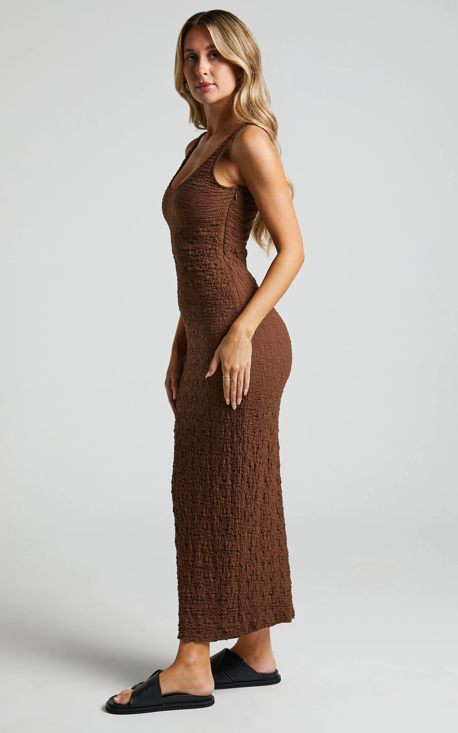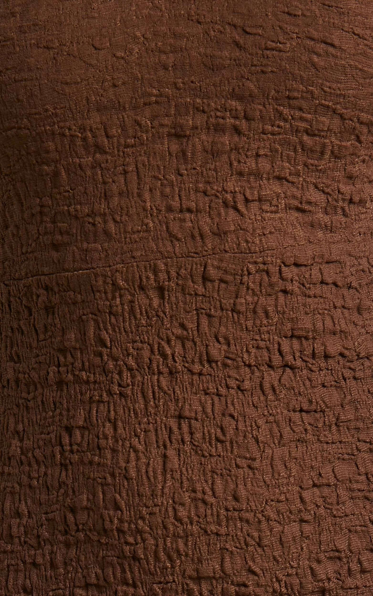 Indulge your sweet tooth with the Novida Midi Dress, a chocolate-hued bodycon dress that serves up major style points. Crafted in cozy jersey fabric, this dress is perfect for any casual occasion, from weekend brunches to afternoon strolls in the park.
