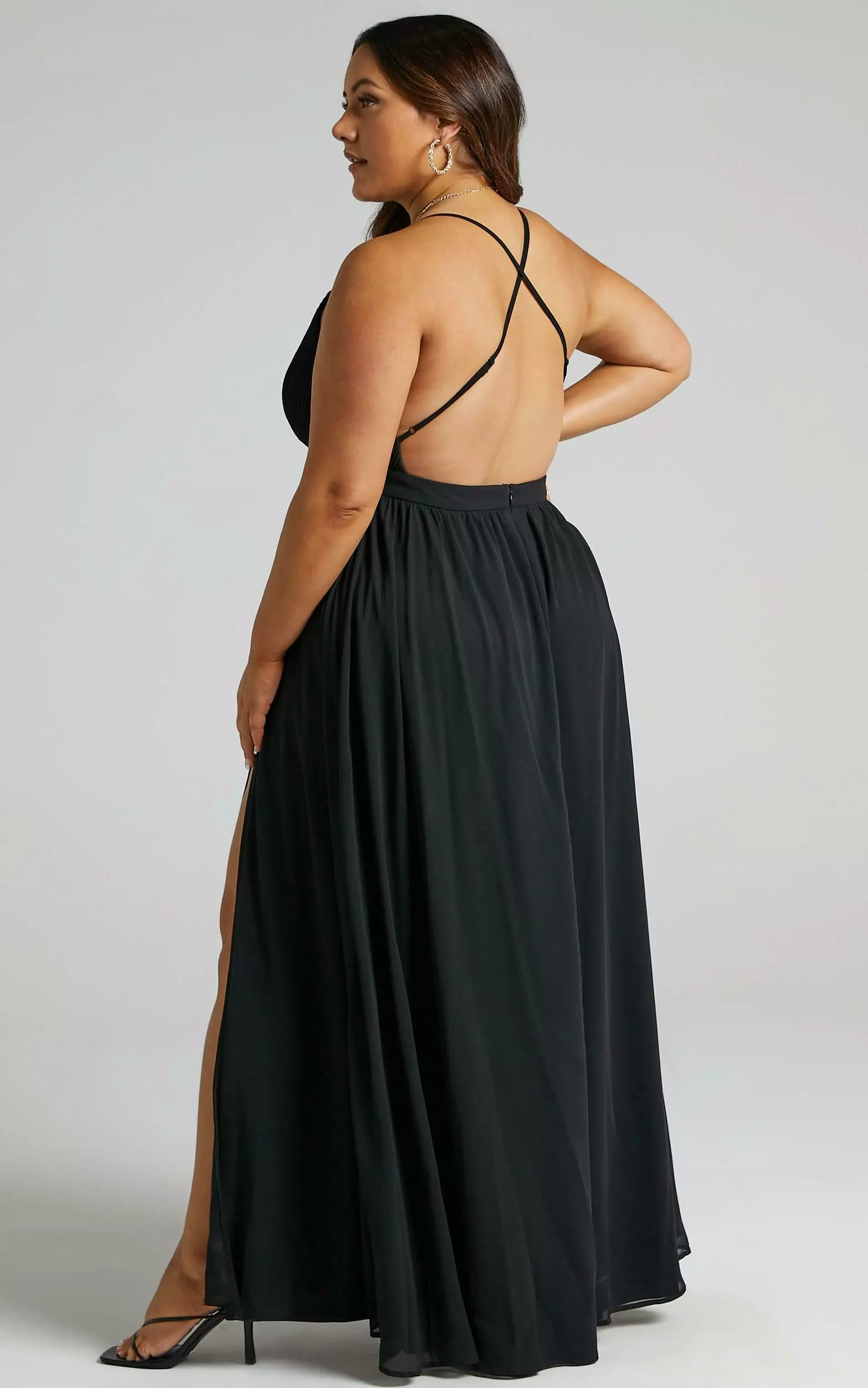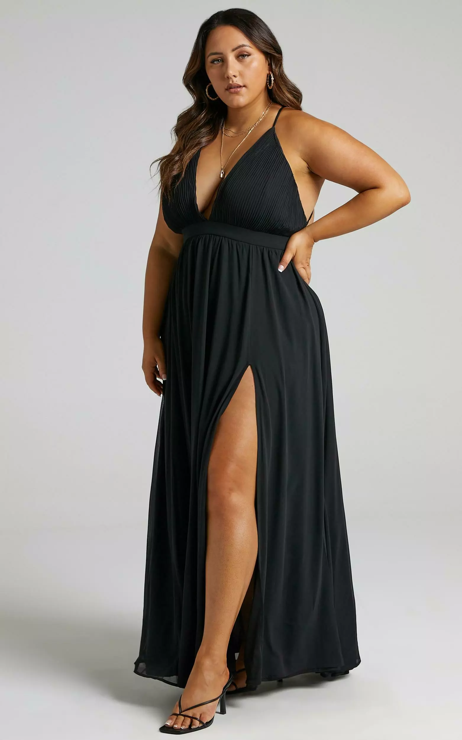 Our Shes A Delight Maxi Dress expresses an air of confident femininity with it’s flowy gathered skirt. It’s constructed with a plisse bodice, and shaped with a plunging neckline and slender shoulder straps that form a cross over at the back. The waist is defined with a fitted waistband and finished with a deep thigh high split for gracious movement with every step. It’s ideal for upcoming weddings and other special occasions – pair it with some heels and a mini handbag to complete the look!