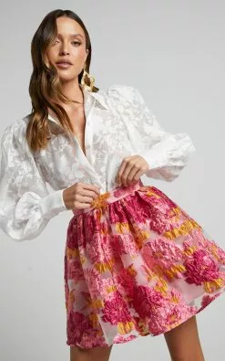 Showpo Brailey Full Mini Skirt In Pink Jacquard